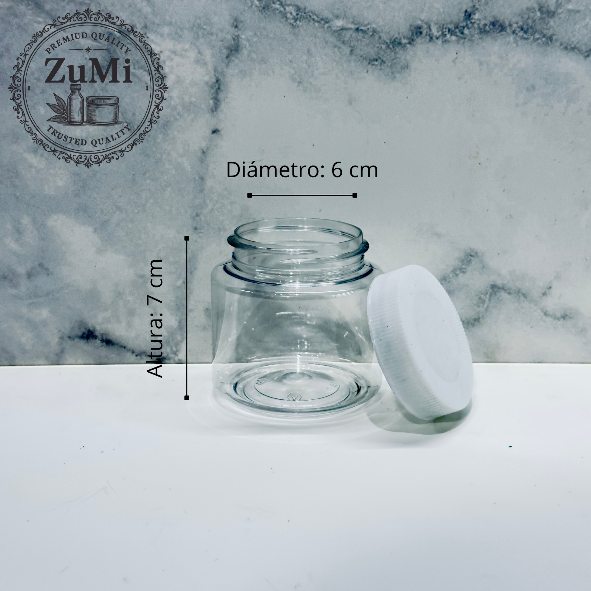 Este tarro de PET transparente tipo cristal ofrece una excelente visibilidad del contenido, brindando una presentación elegante y moderna. Ideal para productos cosméticos, polvos, suplementos, alimentos secos o productos artesanales.